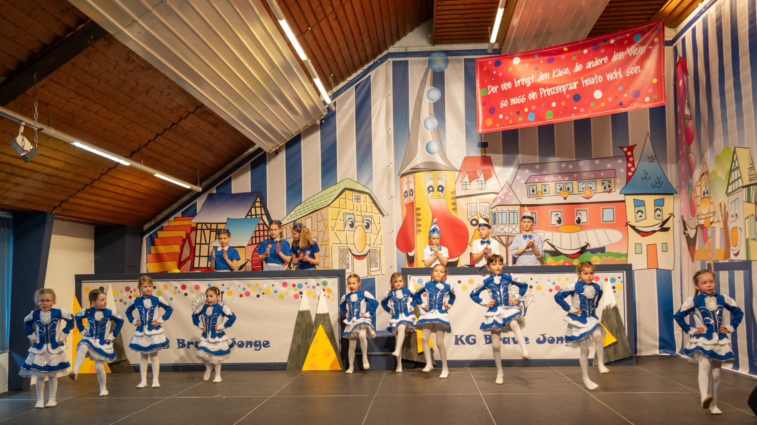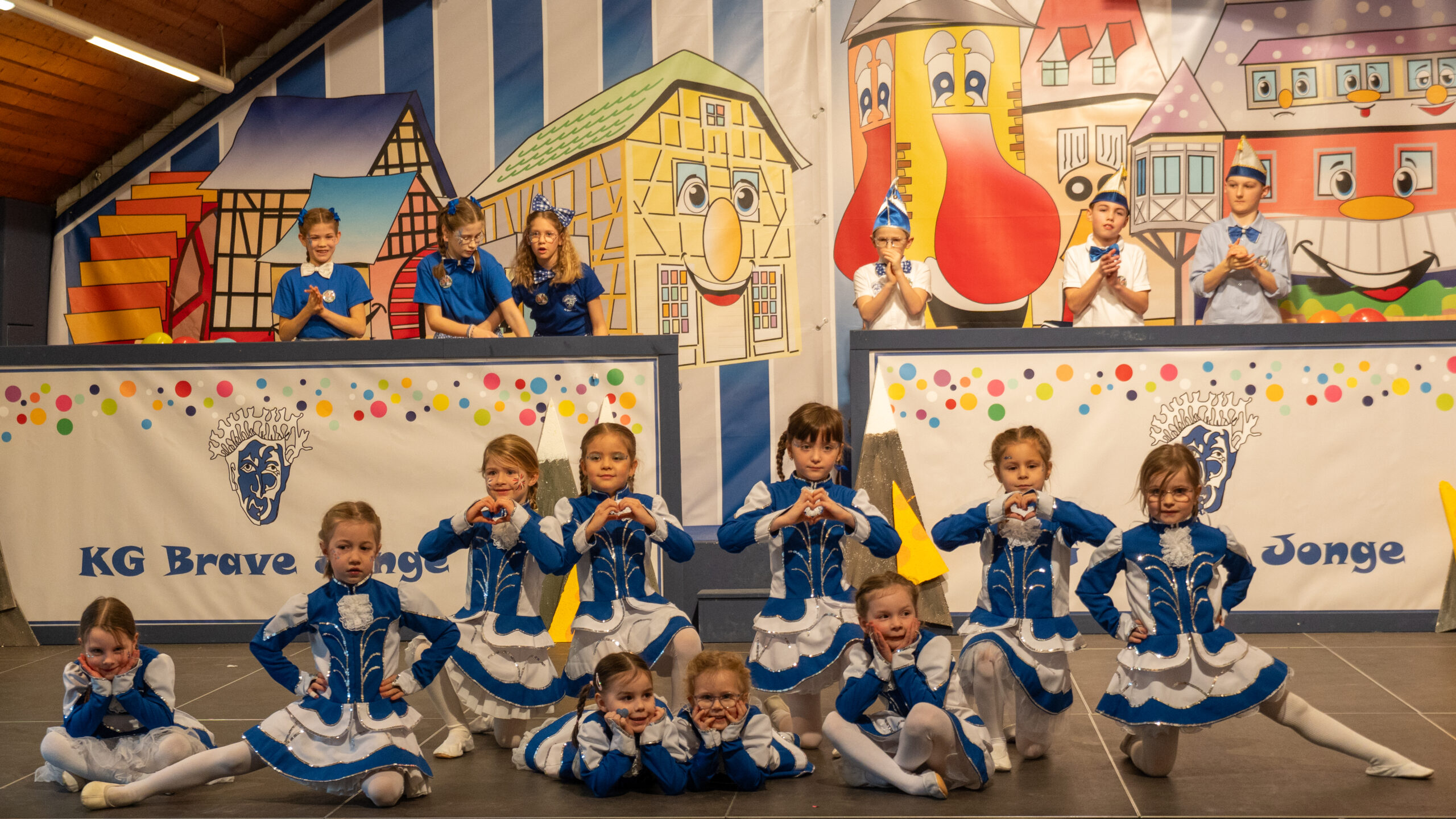 Nach einer kurzen Pause ging es weiter mit dem Auftritt der Kindergarde der KG Brave Jonge. Mit einem ausdrucksstarken und gut abgestimmten Tanz zeigten die Tänzerinnen und Tänzer ihr Können und wurden dafür mit viel Applaus aus dem Publikum belohnt.