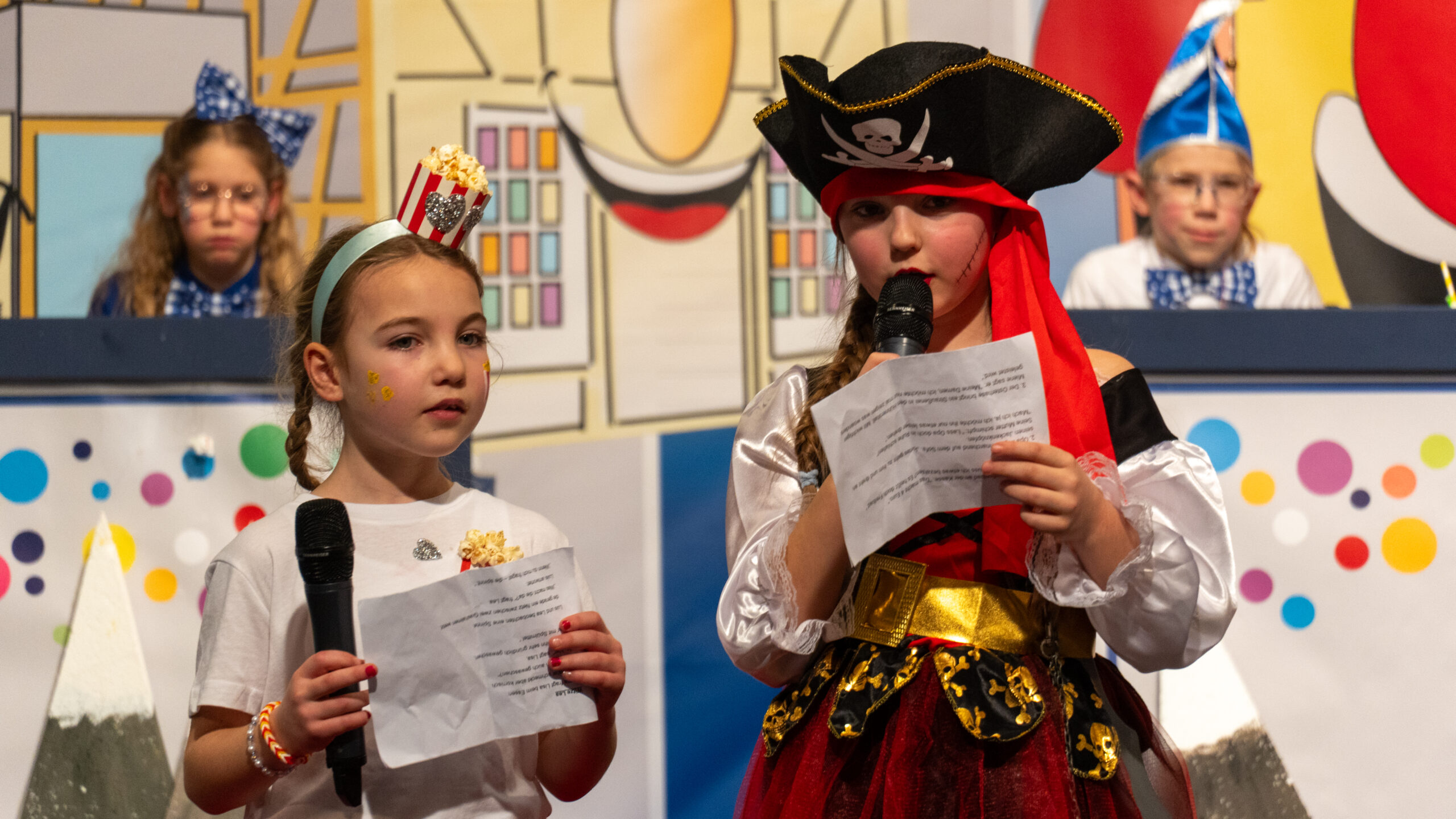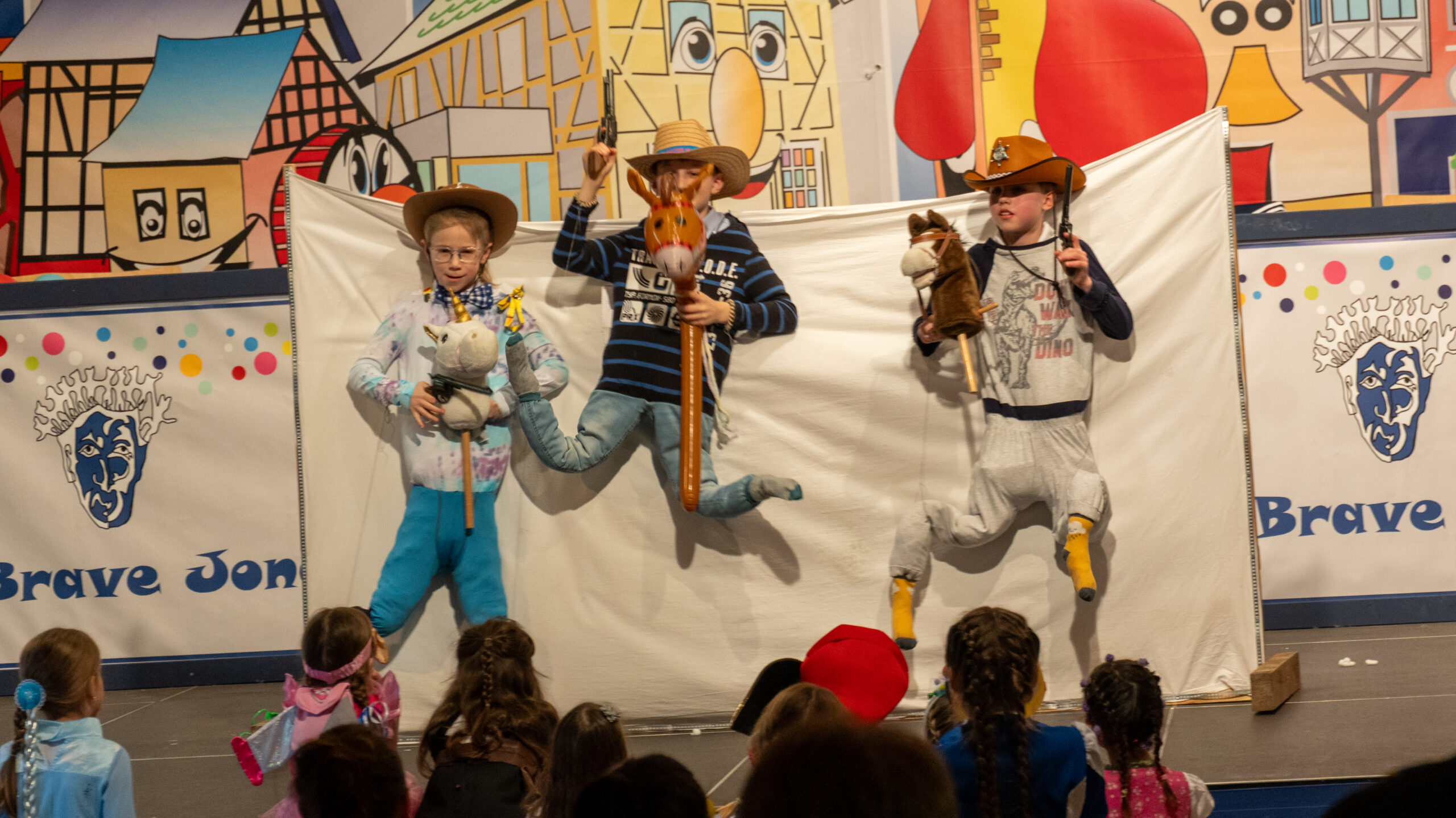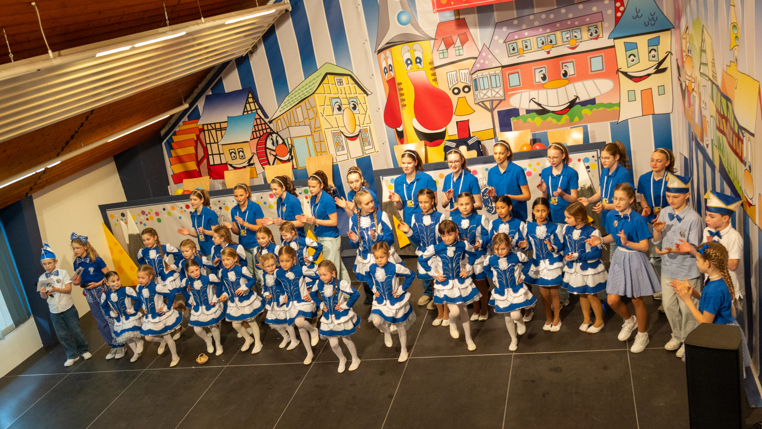 Mit einem ideenreichen Auftritt begeisterte die Gruppe „Louis & Friends“ das Publikum beim Kinderkarneval. Hinter einem Vorhang steckten die Kinder ihre Köpfe und Arme hindurch, während mit Fäden befestigte Beine für witzige Bewegungen sorgten. Durch den Wechsel von Musik und Accessoires entstand eine abwechslungsreiche und humorvolle Darbietung, die bei Groß und Klein für viele Lacher sorgte.