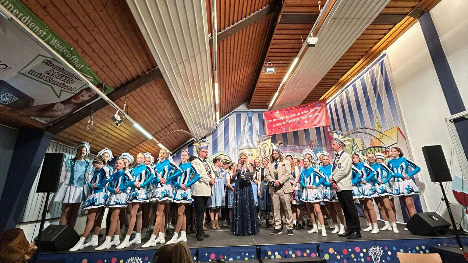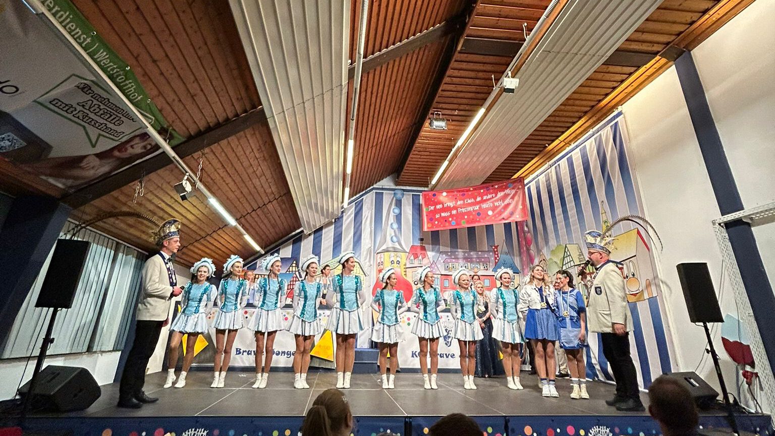Anschließend begrüßte man die Gastvereine der KG Roßbach und des KC Niederbreitbach auf der Bühne. Die Roßbacher Karnevalisten stellten dabei ihre Prinzessin Alicia I. vor. Ein ganz besonderer Moment folgte mit dem Auftritt der Brave Mädche, der Tanzgruppe der KG Brave Jonge. Mit viel Energie, Präzision und sichtbarer Freude am Tanz zeigten sie ihr Können und wurden vom Publikum mit begeistertem Applaus belohnt – ein weiterer Beweis für die hervorragende Nachwuchsarbeit der KG.