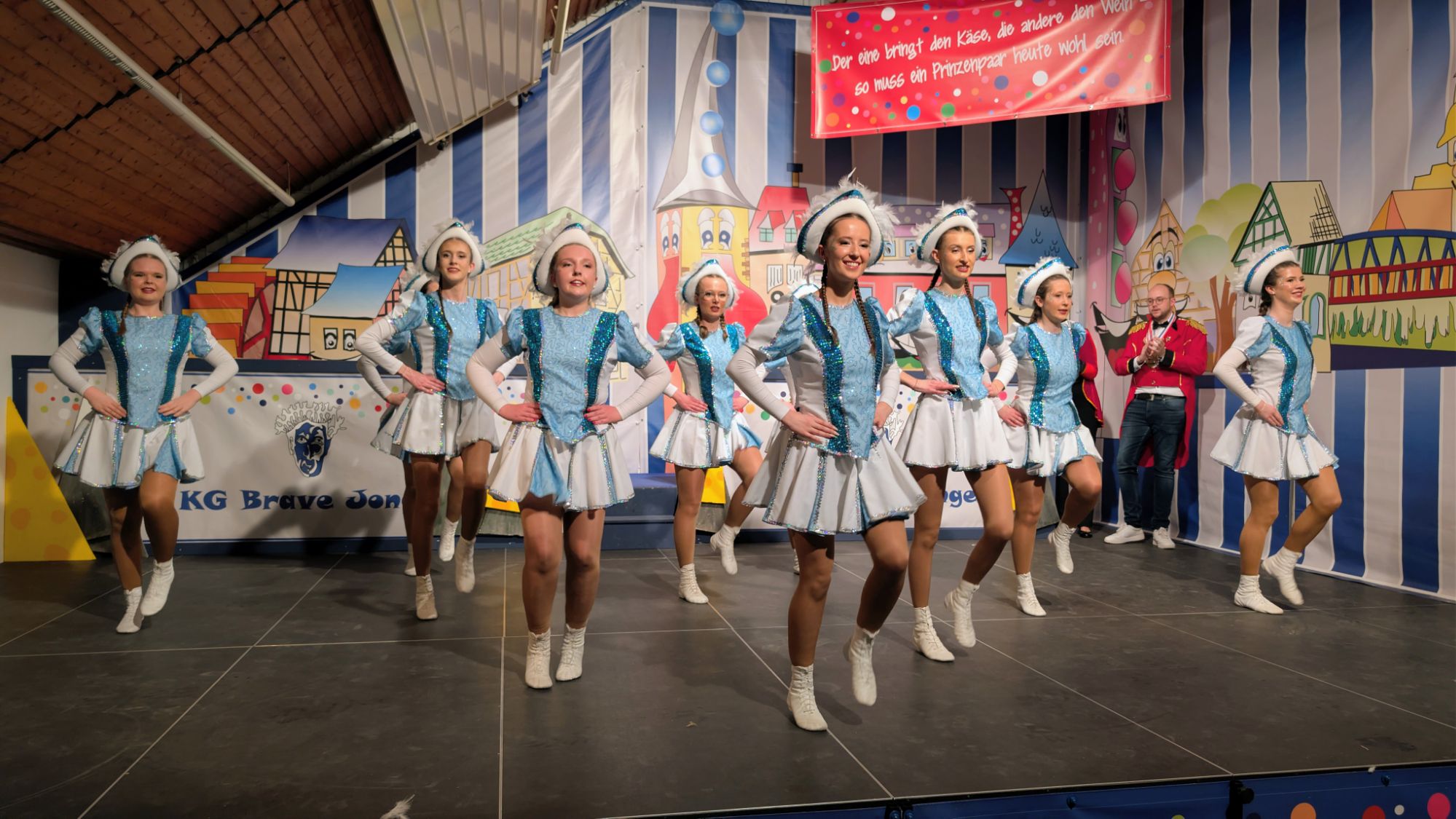 Durch das abwechslungsreiche Programm führte Verbandsbürgermeister Pierre Fischer, der selbst ein Braver Jong ist. Mit viel Charme und karnevalistischer Erfahrung moderierte er den Abend und gab jedem Karnevals- und Möhnenverein die Gelegenheit, sich sowie die jeweiligen Prinzenpaare dem Publikum zu präsentieren. Zwischen den Präsentationen sorgten verschiedene Tanzgarden mit ihren Darbietungen für stimmungsvolle Höhepunkte. Unter anderem zeigten die Brave Mädche der KG Brave Jonge ihren aktuellen Sessionstanz, den sie unter großem Applaus des Publikums erfolgreich vorführten.