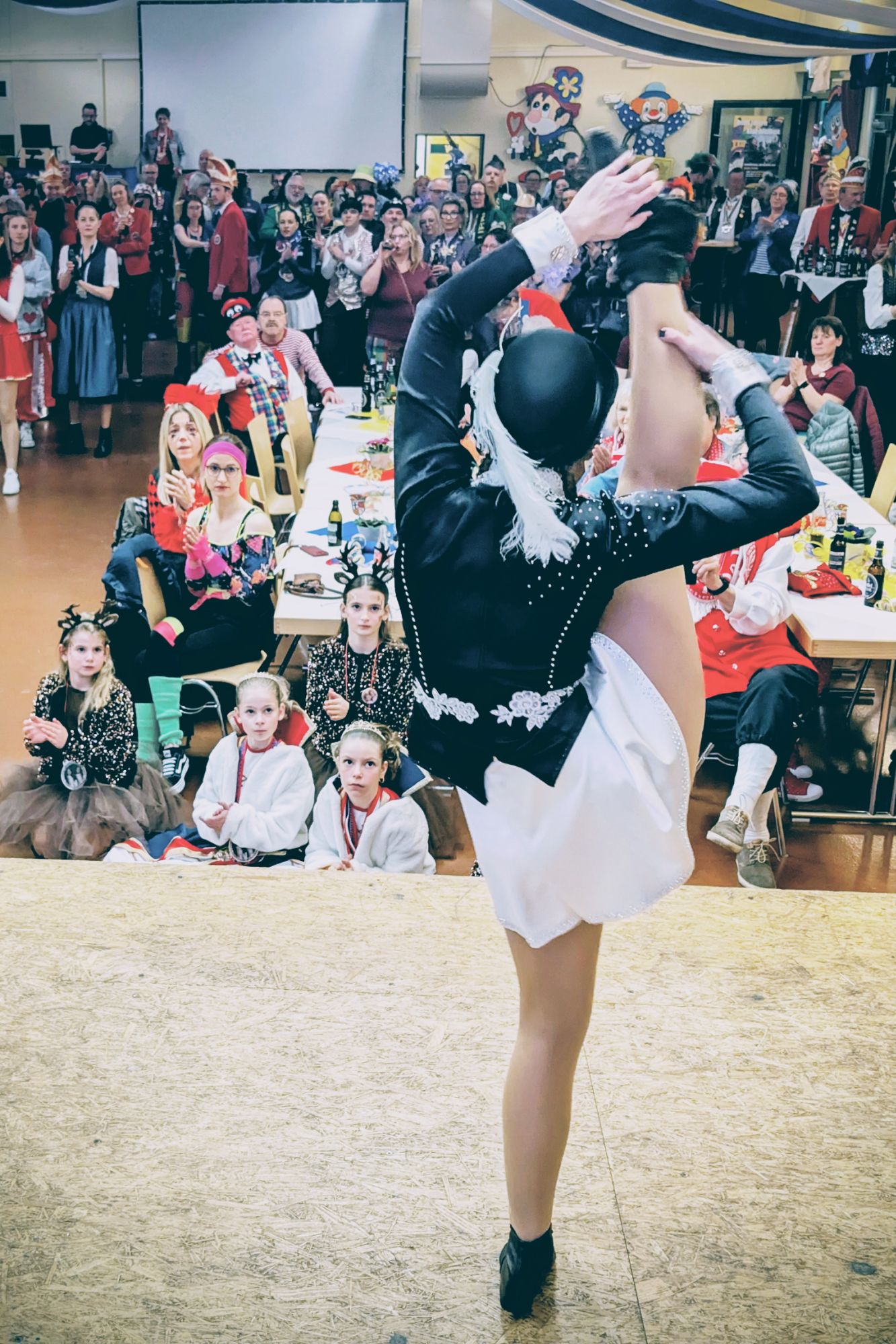 Mit tänzerischer Eleganz begeisterte im Anschluss das Solomariechen der KG Verscheid, Dana Fischer, das Publikum. Für musikalische Stimmung sorgte danach Michael Stüber von der KG Verscheid, der mit seinen in der Verbandsgemeinde bekannten Karnevalsliedern die Halle zum Mitsingen und Schunkeln brachte.